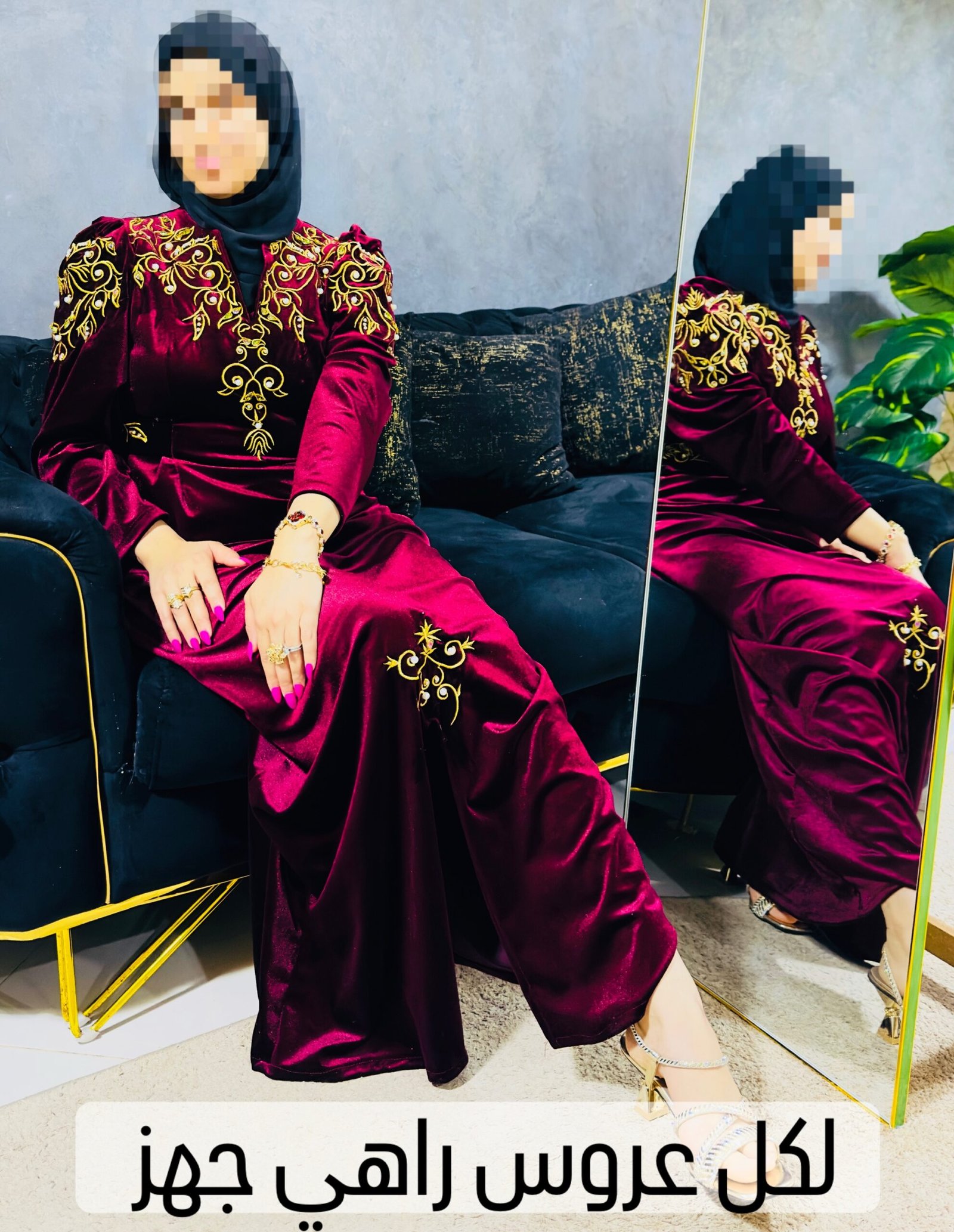تصميم فاخر يعكس الأناقة والرقي، مصنوعة من قماش قطيفة روايال الناعم والفاخر.